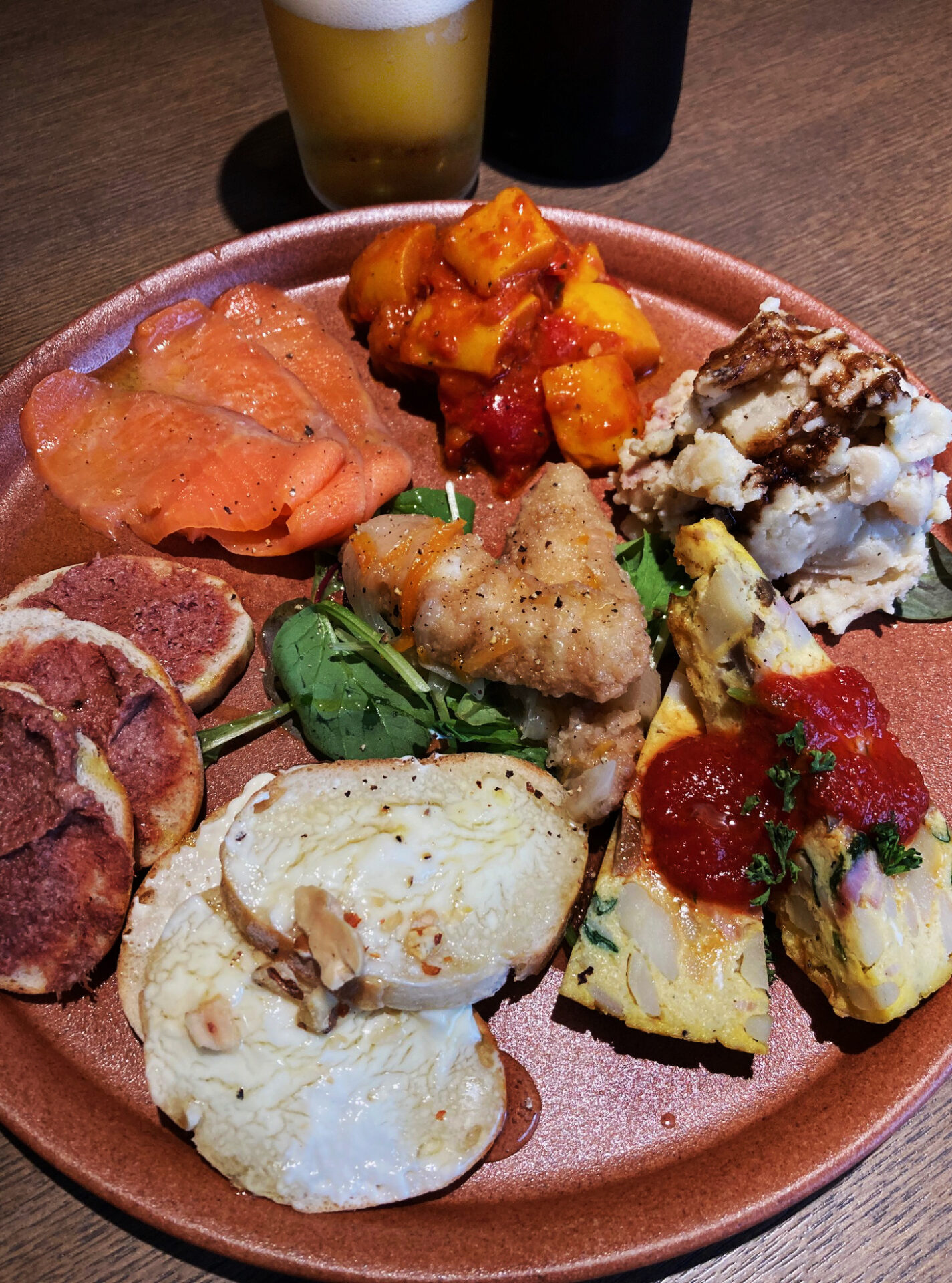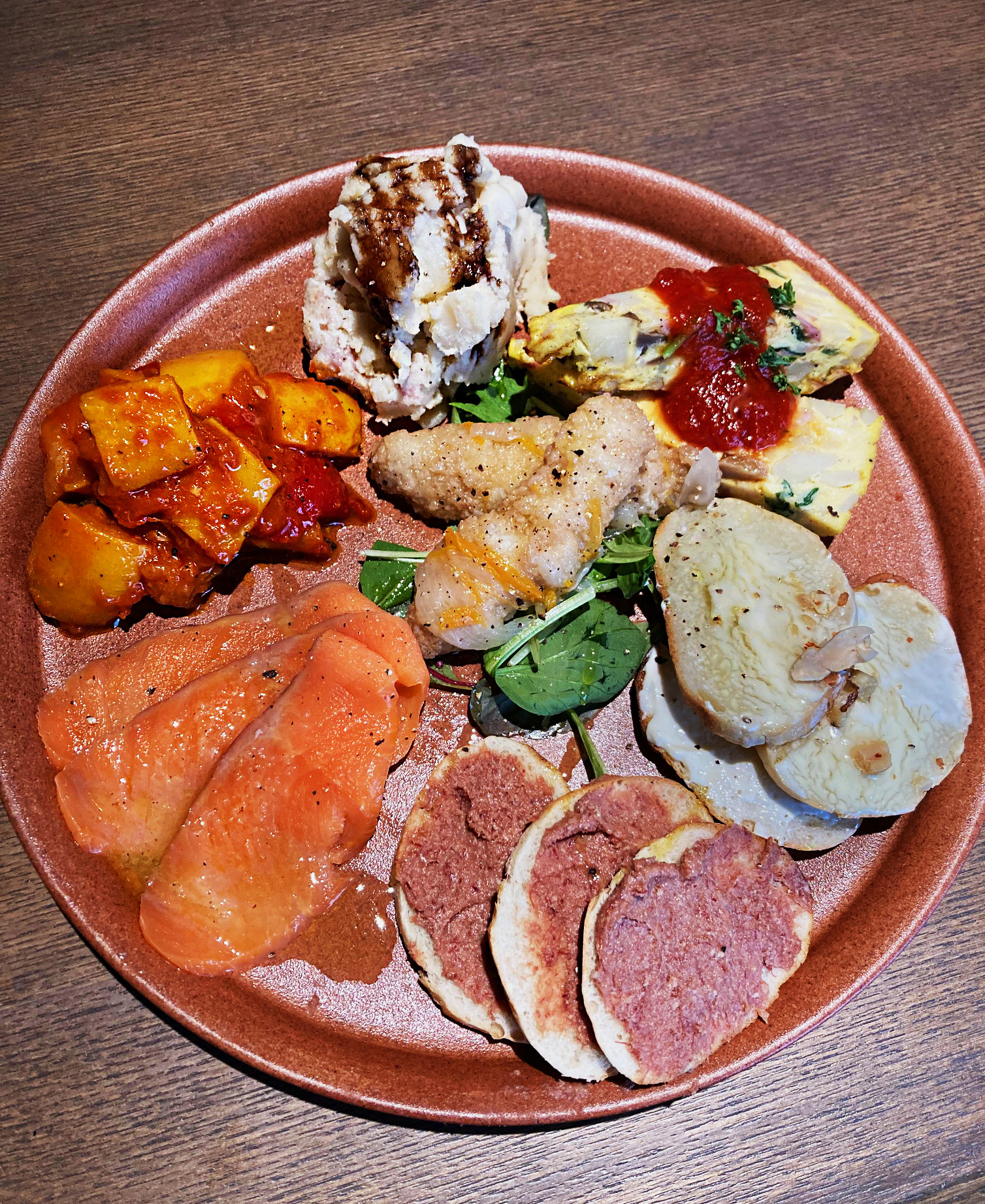 ブッチャーズポテトサラダ、フリッタータ、ハニーチーズ豆腐、フォアグラとコンビーフのパテ!、