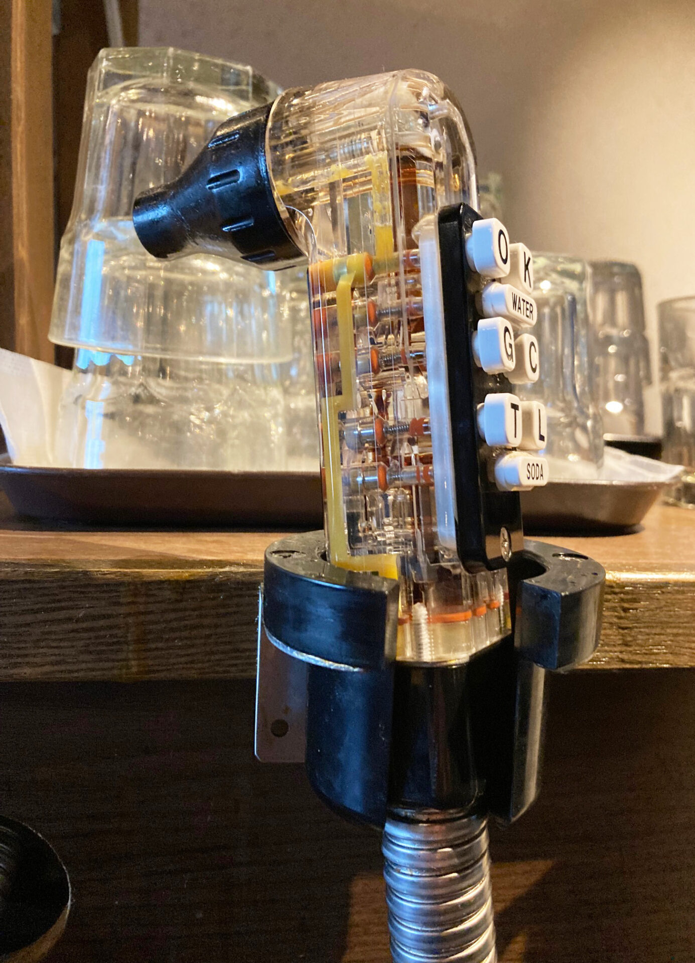 しかし、いつ見てもカッコイイ。アルファベットのボタンを操作していろんなドリンクをコップにつぐのヨ。やあね、最先端じゃないのよ。