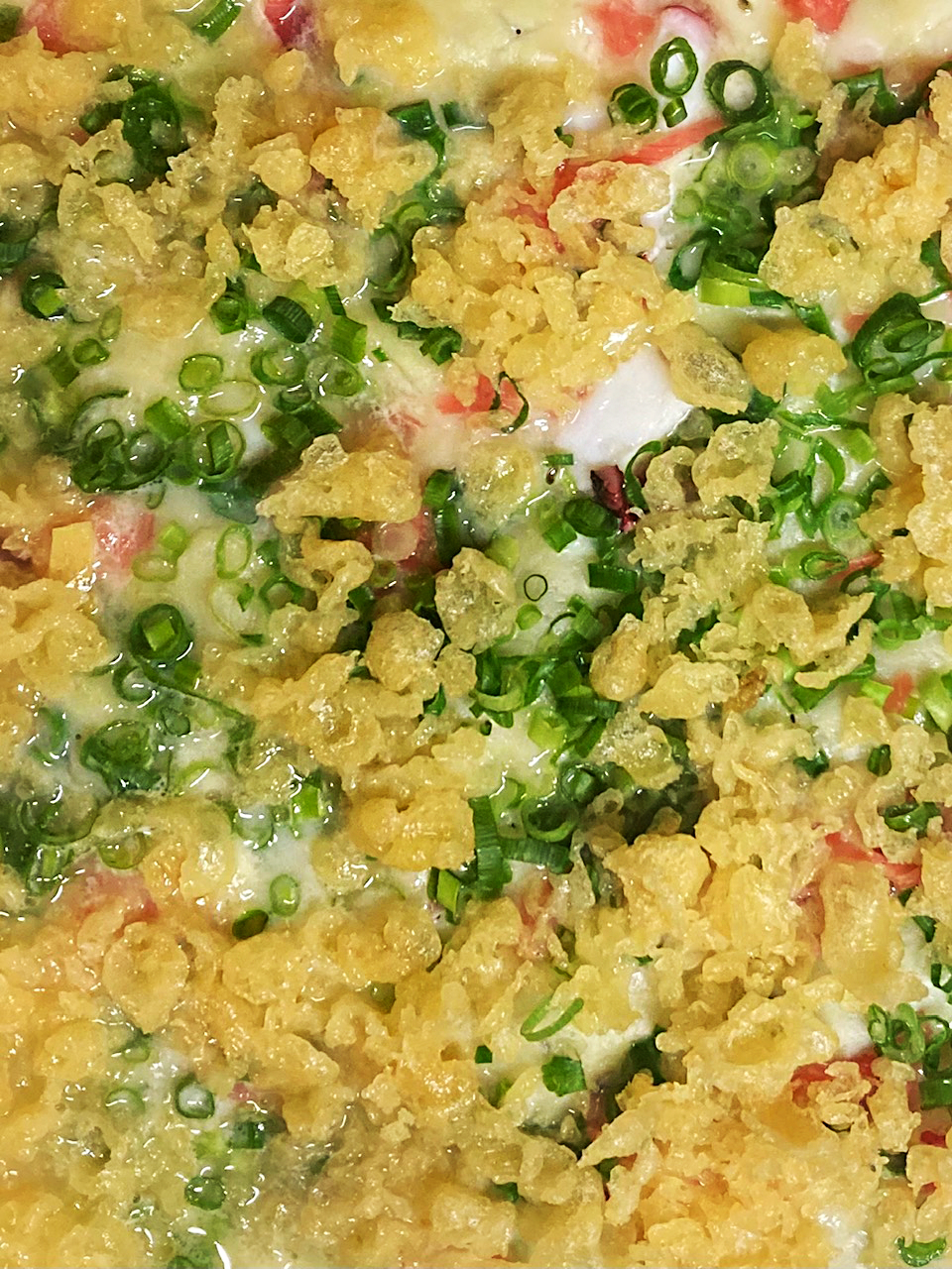 新鮮でカリッカリ、たまらなく軽やかな王道の揚げ玉ふんだんにッ!。