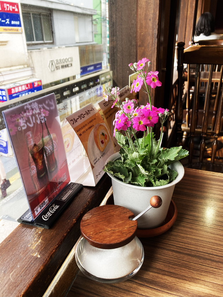 カフェリアの扉を引いた時、左手のウィンドウディスプレイらが低く細く