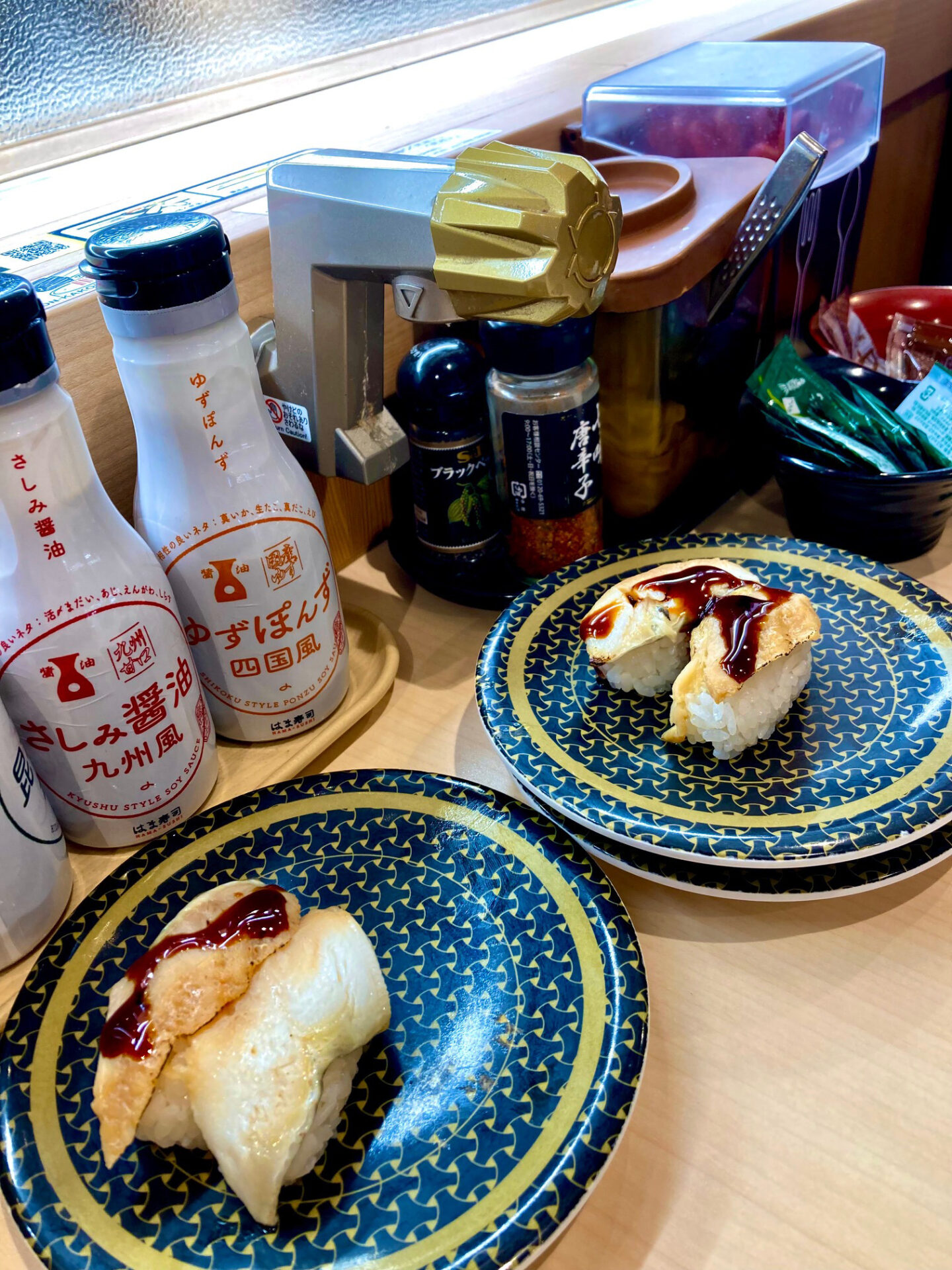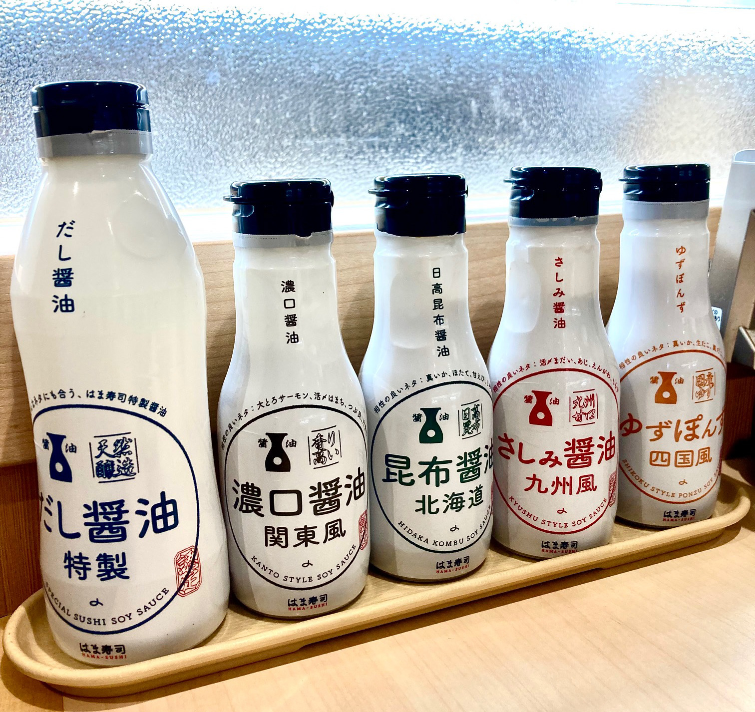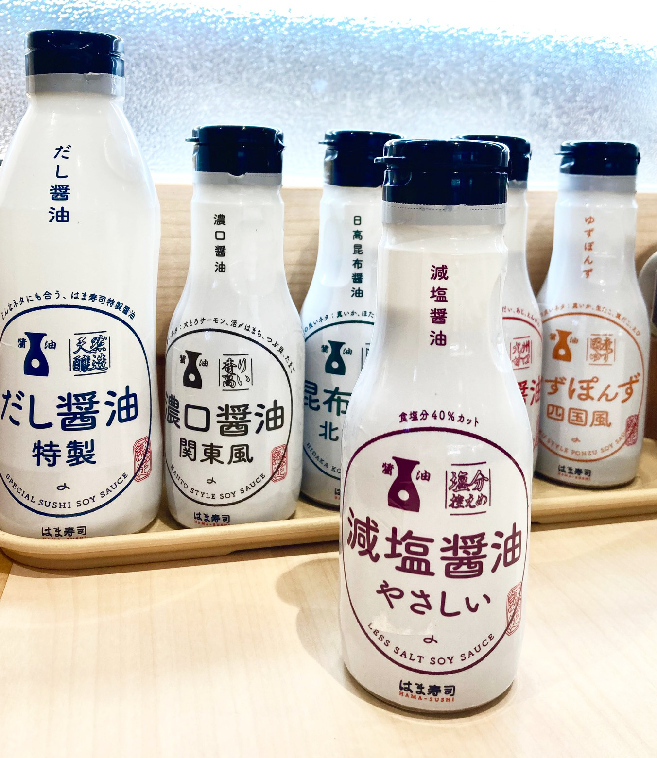 でも、左の、はま寿司特製醤油の味は神!。特製、にウソいつわりなし!。しゅごーい!。あまりの美味しさに、ついこれONLYで食べたくなっちゃうけど、ハッとして他のを…。