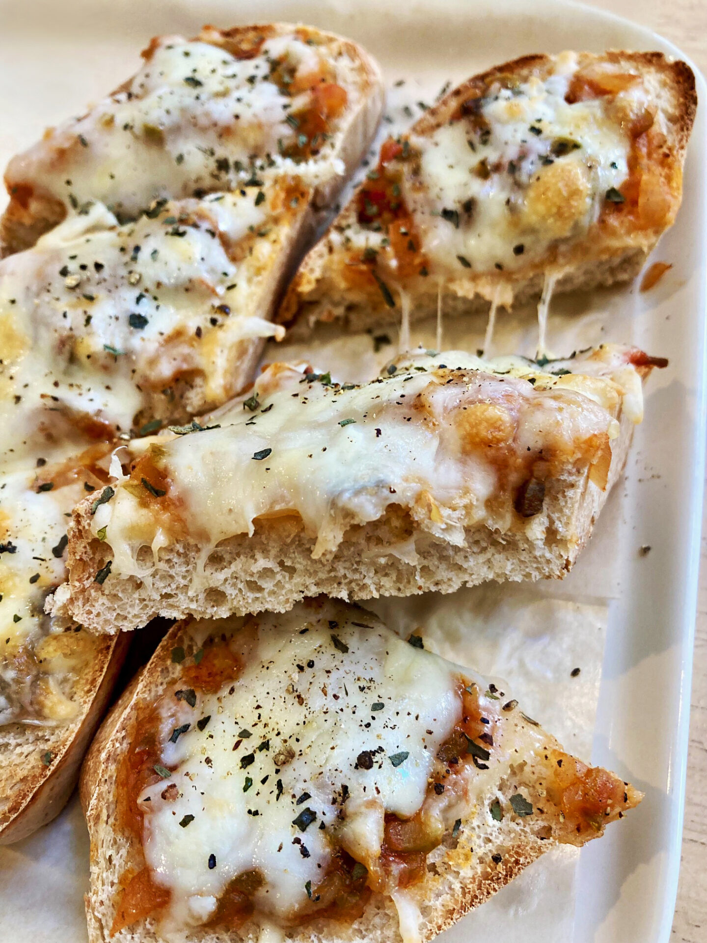 よく焼かれた耳の部分はカリッ。真ん中部分は、具材と焼けて溶けたチーズの旨味が融合、とってもベリー美味しい!!!。