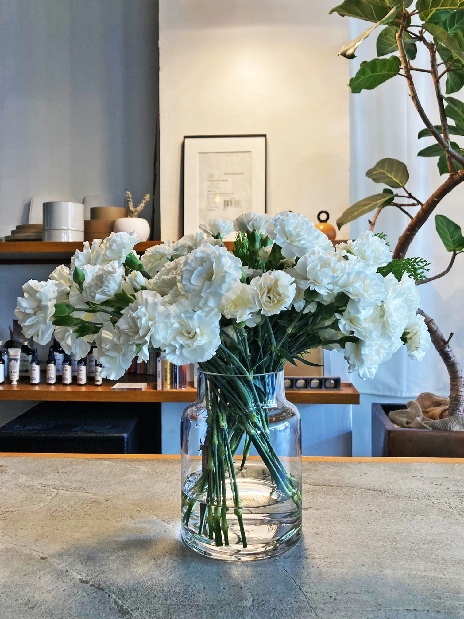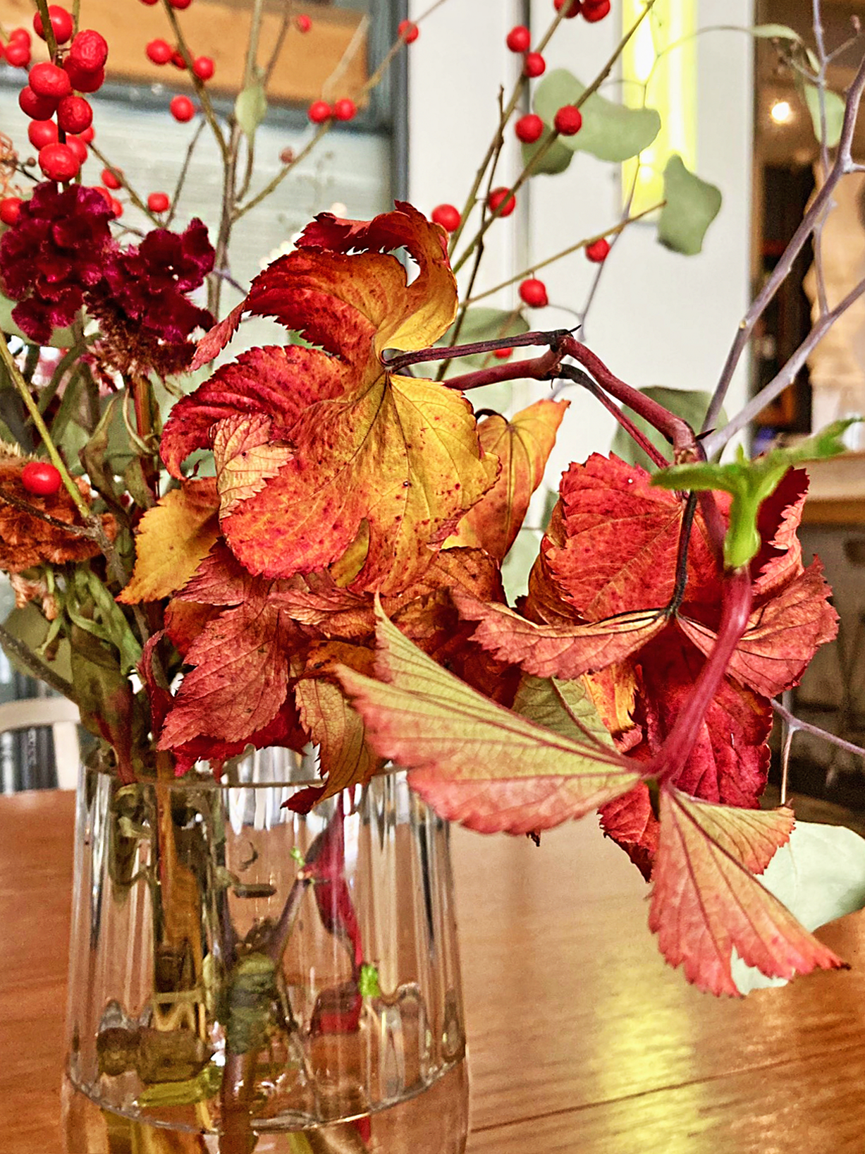フラリ来るたび店内中央テーブルには四季折々の花が飾られてて目をエンジョイさせてくれるこのお店ったら何ちゅー希少価値ッ。