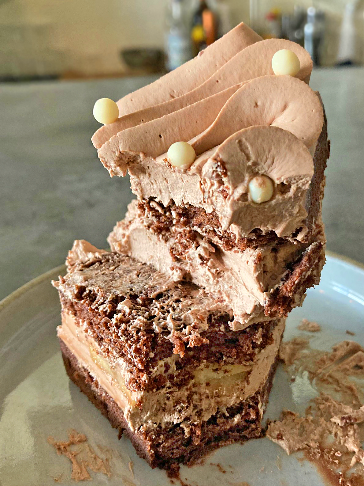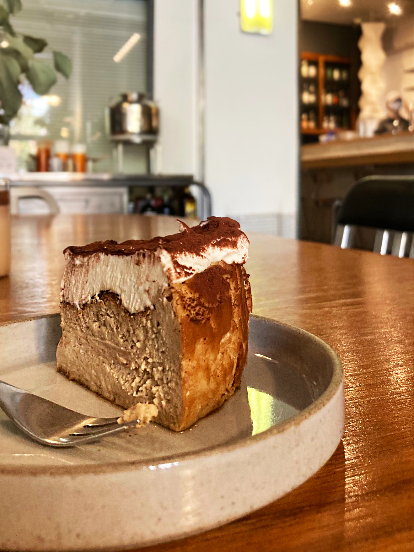ティラミスとバスクチーズケーキの2段重ねたァーこれのことだァ~!。