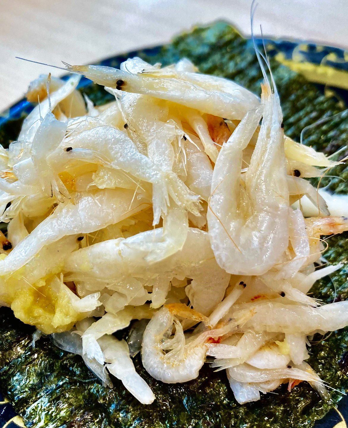 エビの鼻先のトンガリが口の中でアチコチ刺さりまくり!。加えて