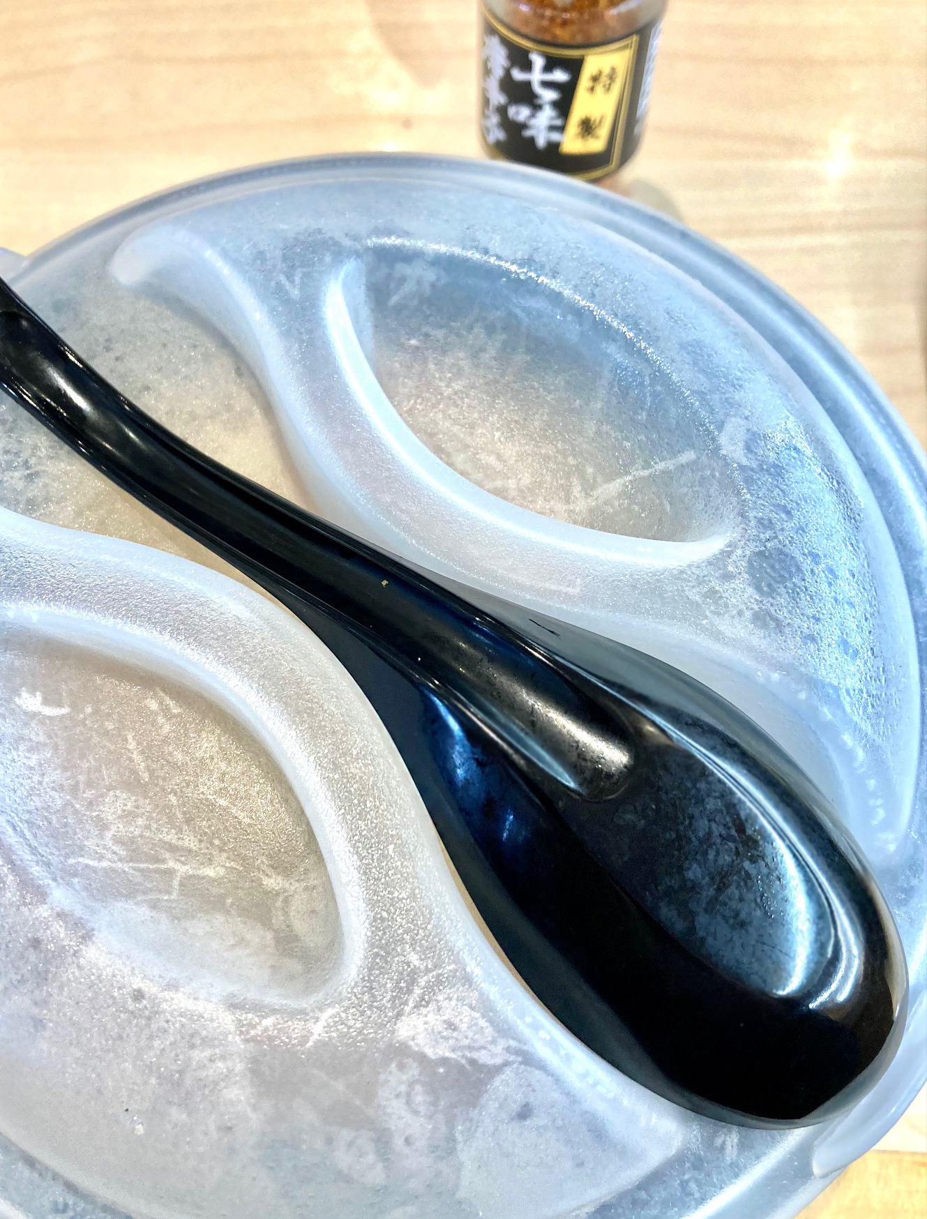 ほほう!。ラーメンどんぶりのフタにレンゲがセッティングかね!。はま特注かね!。