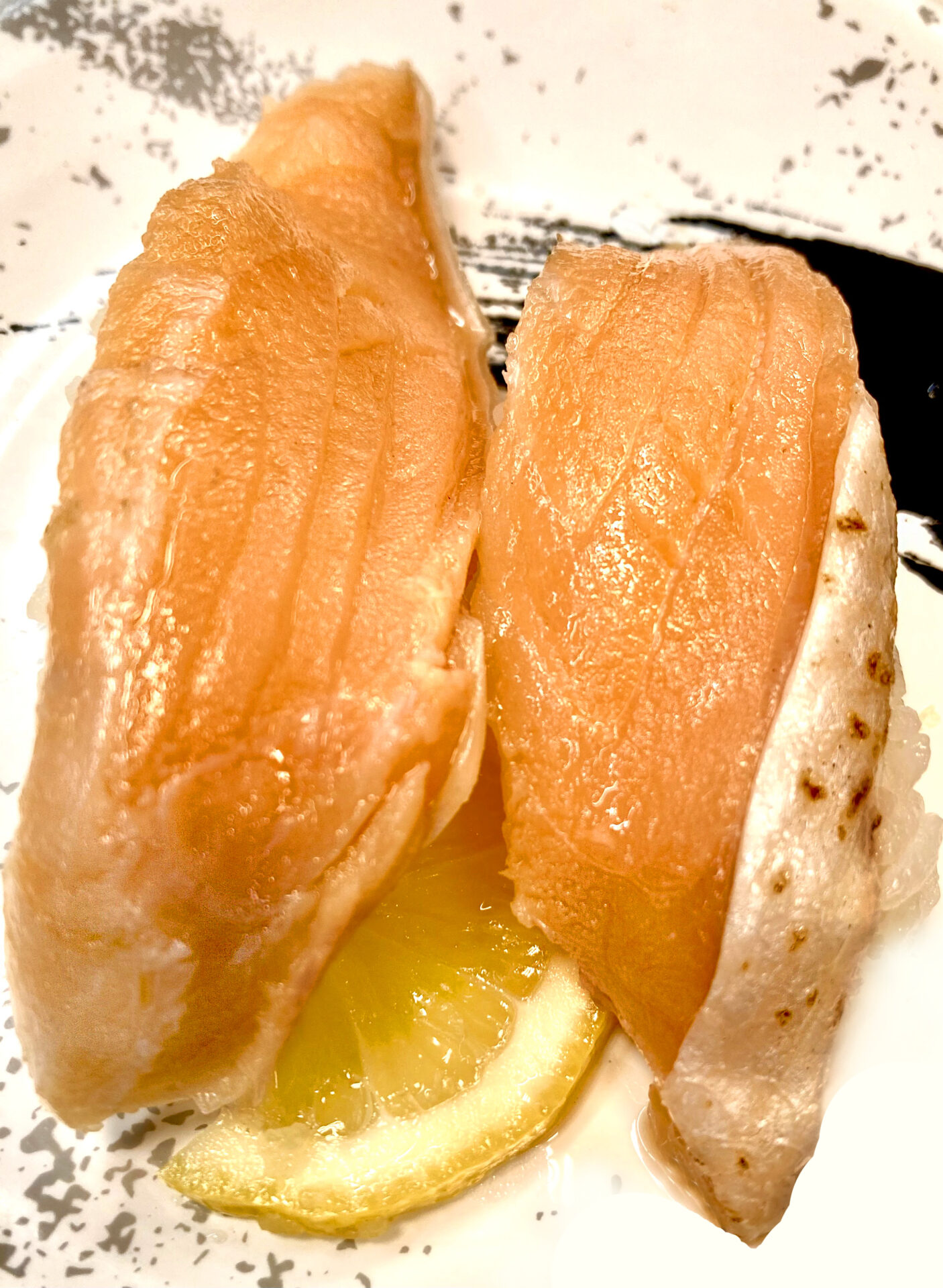 サーモンでふ。アブラがこってり乗っていて濃厚なお味。かなりカルビでふ。