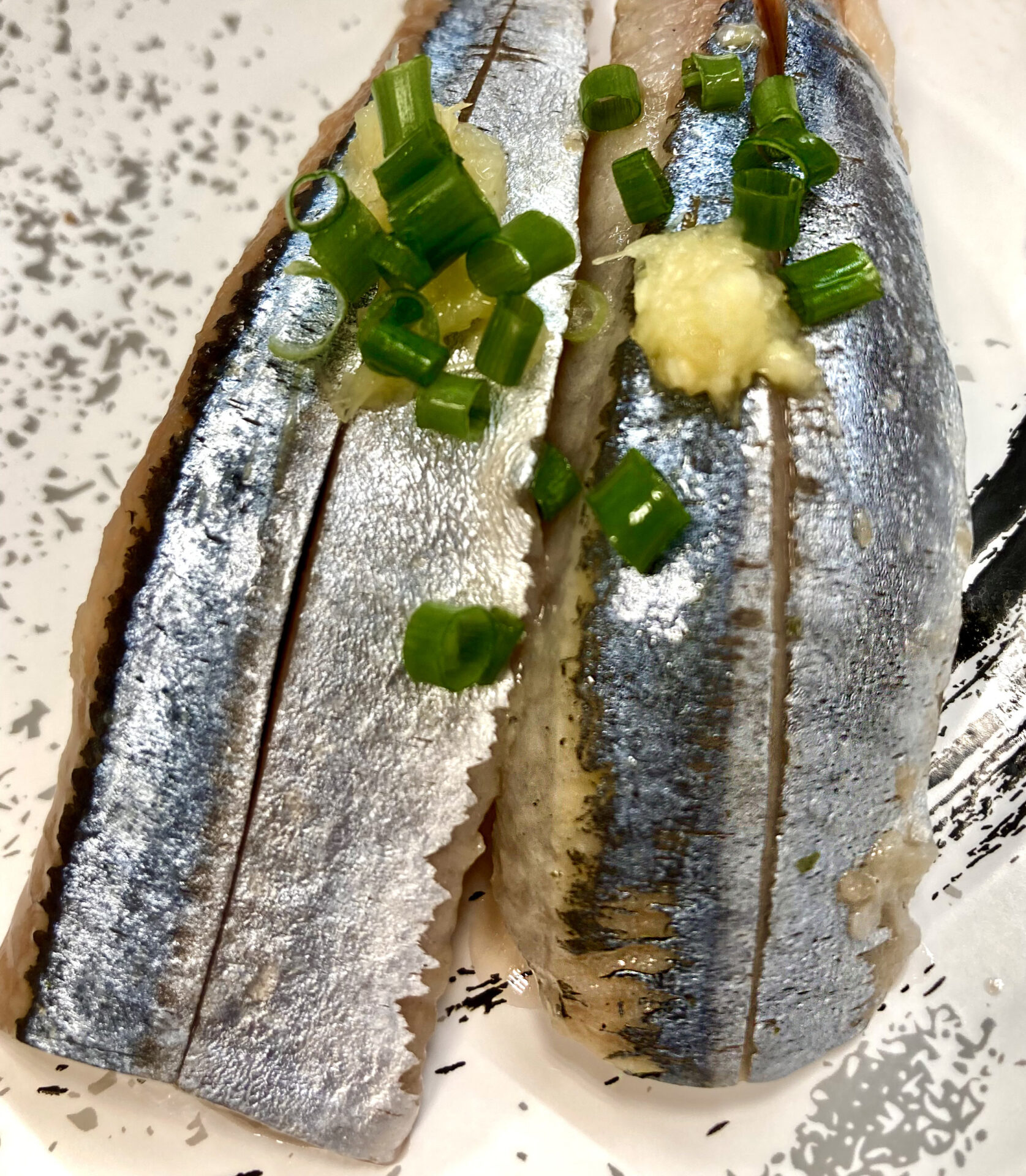 〆サバだよおーッ!。ネタが切れてる。サバ身が切れてるのを見るのはここが初めてだ~。お味は普通。脂のノリがイマイチだったからかも。