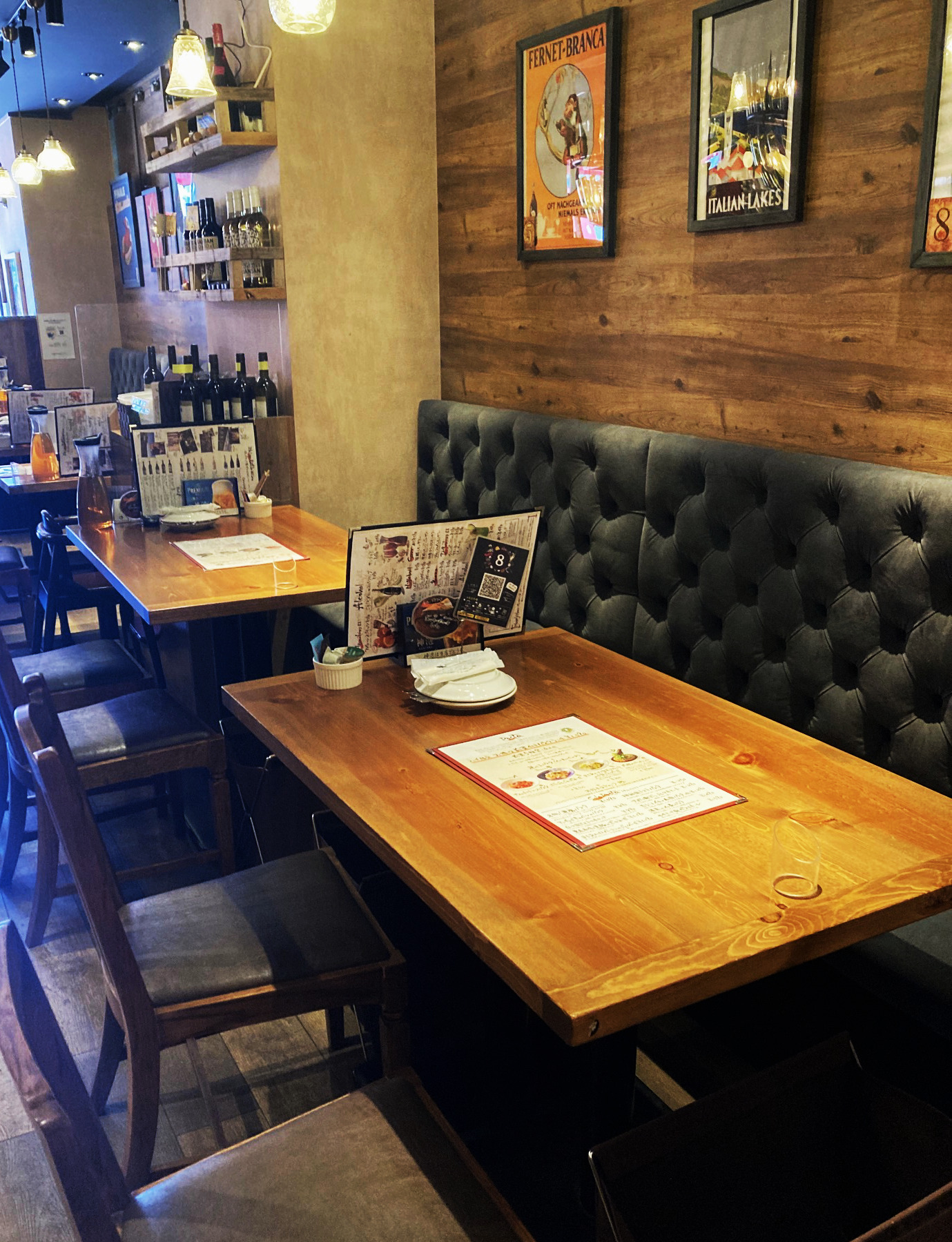 こうゆーの大好き!。奥の突き当り、仕切りのある4人掛け席に着席ッ!。