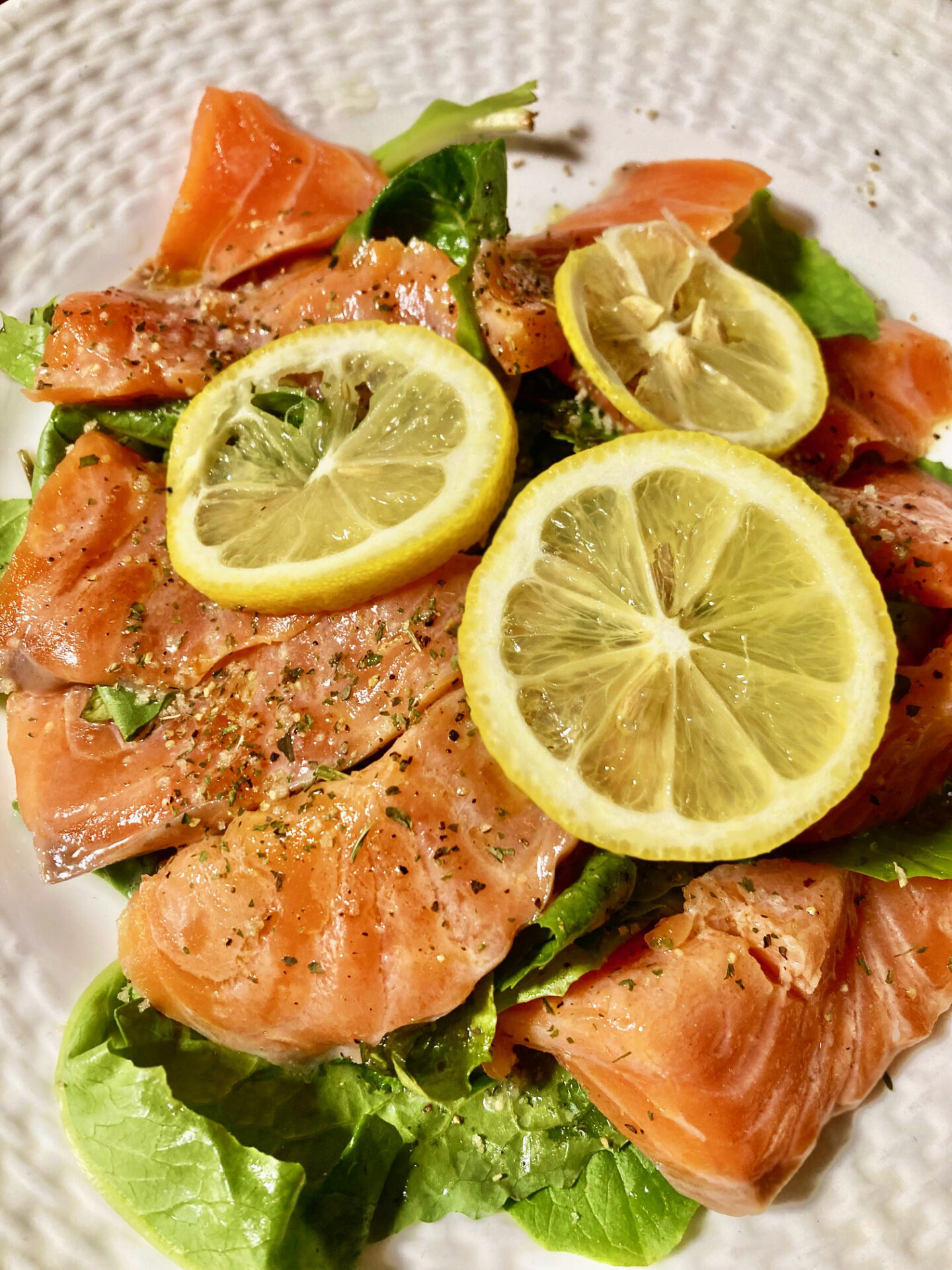 夕飯はサラッとコレだけだよーん。帰りにスーパーで安かったサーモンの刺身とレモン、ベビーリーフを買ってきて、サッパリと和風レモンドレッシングをかけたのでフ。