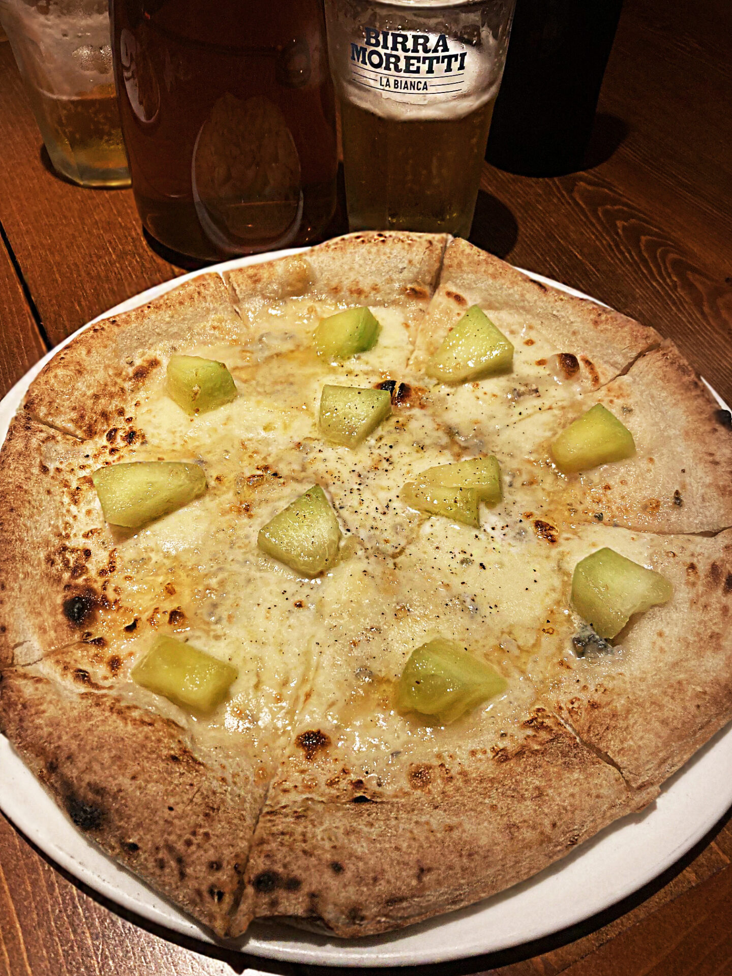 “大人の贅沢!メロンの甘さとゴルゴンゾーラの濃厚さが融合したピッツァ”