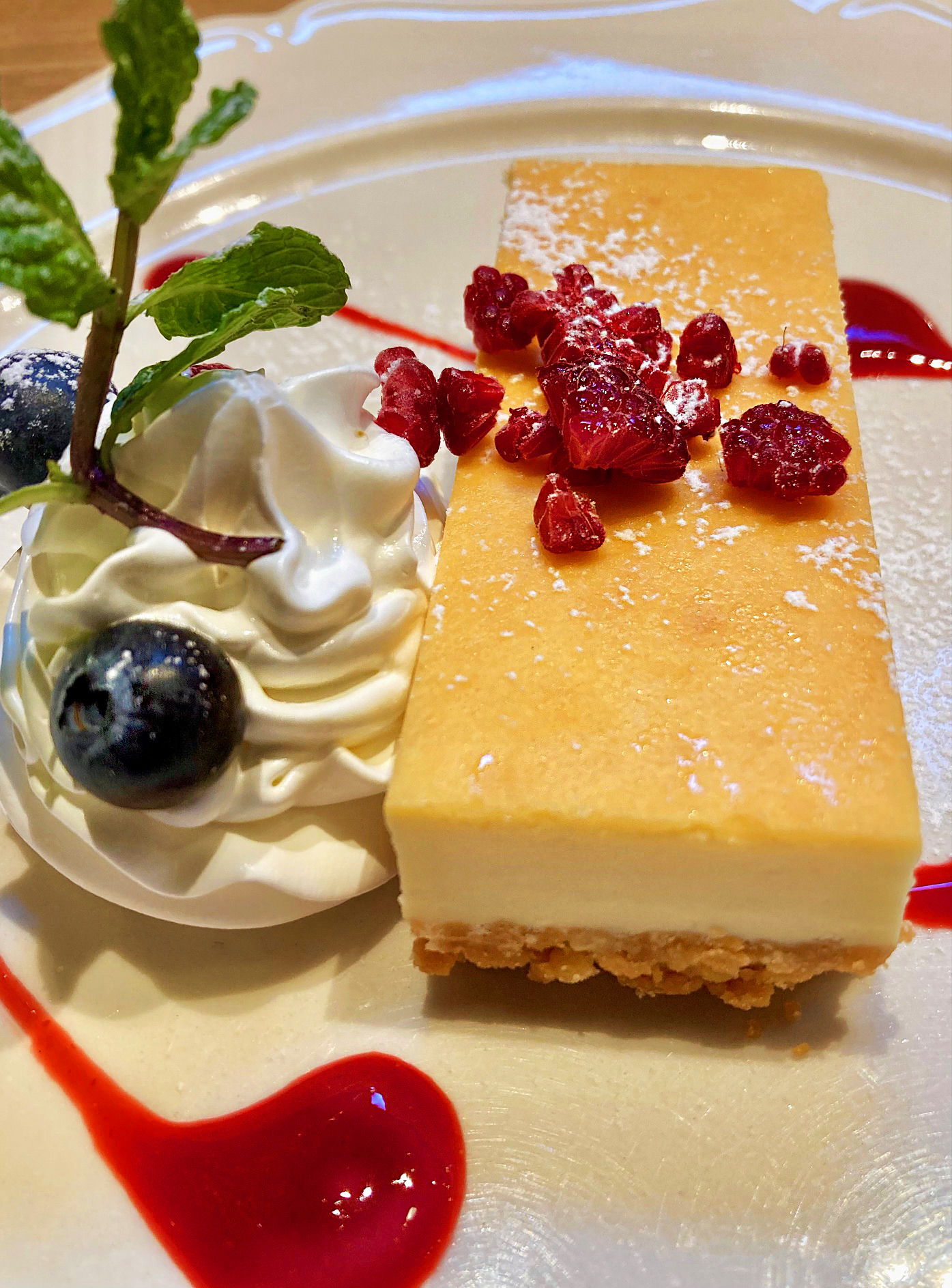 チーズケーキは非常に固め、チーズの味はあまりしない。