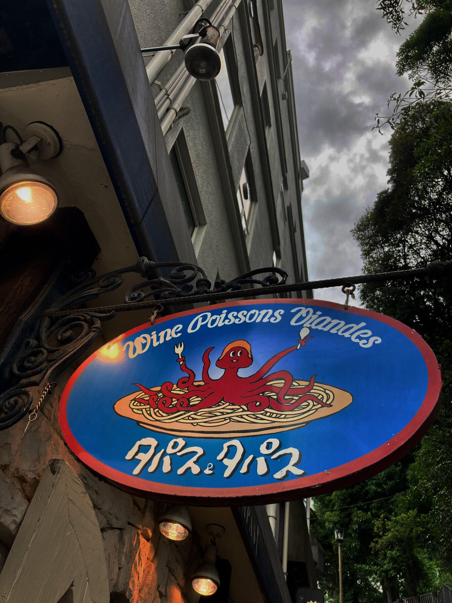見よ、タコ野郎をロゴにしたパスタパスタ専門店のタパス&タパスを!。