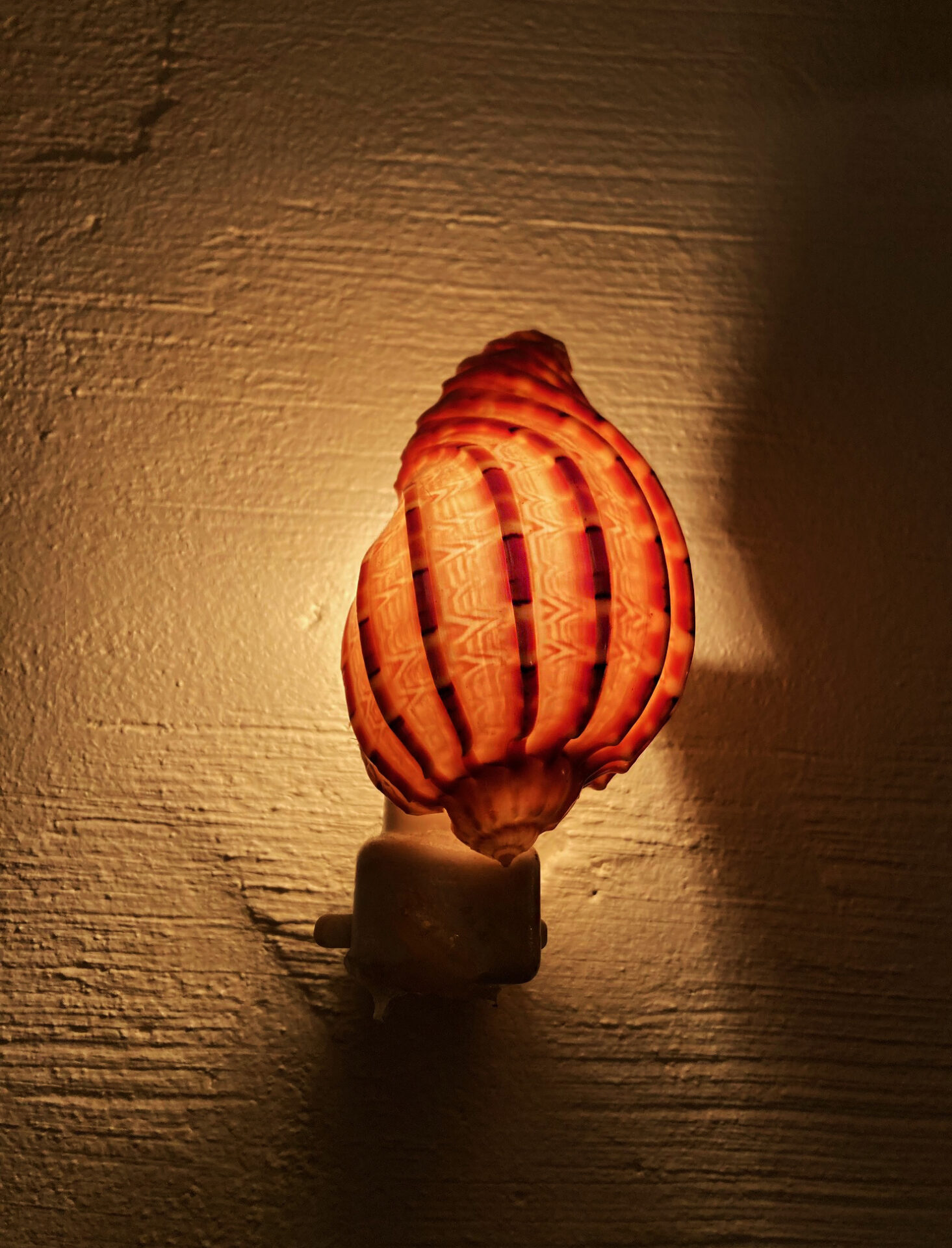 シャレたデザインの貝殻ランプが、心の極秘計画をあぶりだすであろう席に着席を余儀なくされる!。