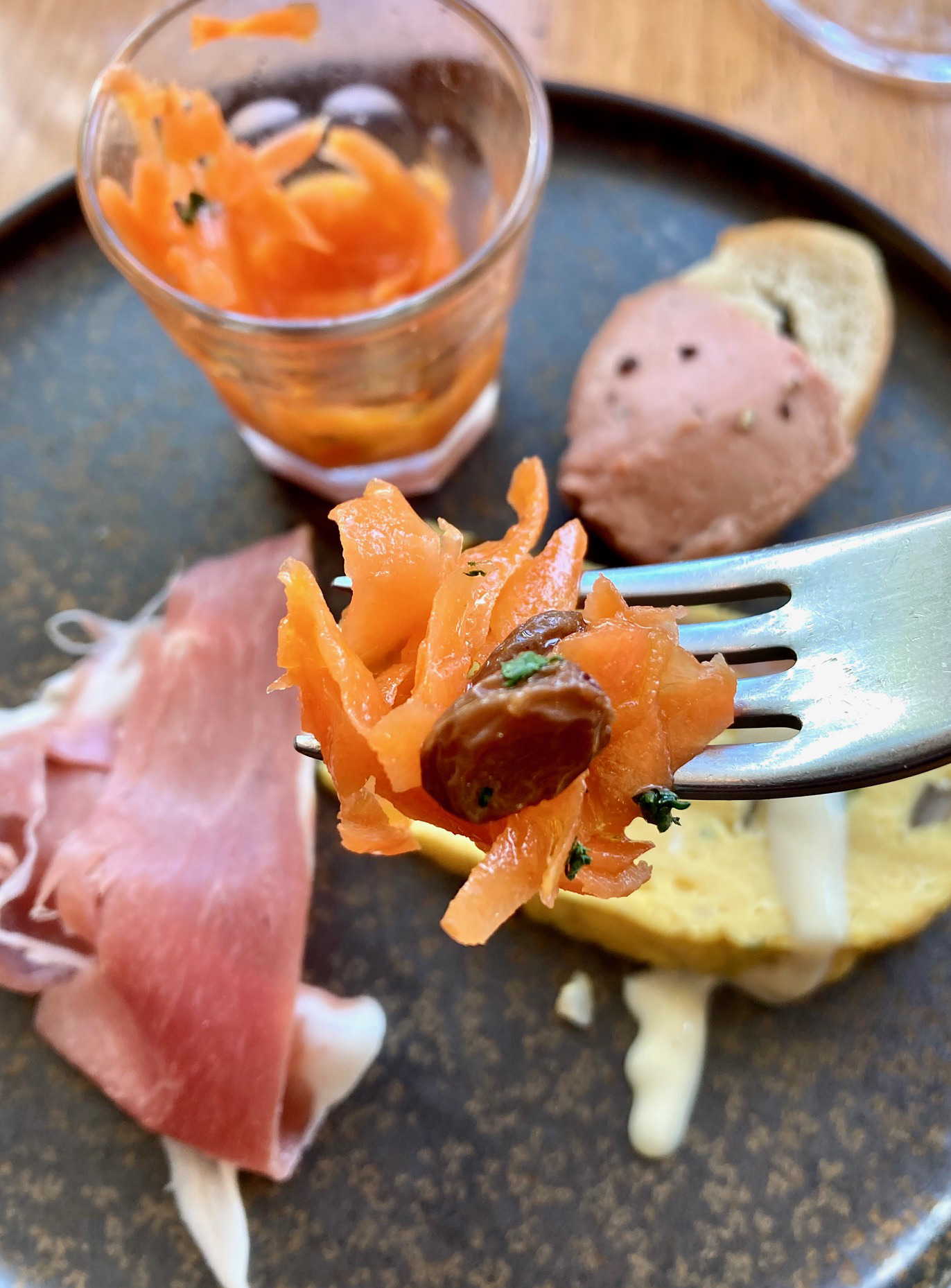 ニンジンとレーズンの和え物?、でしょうかネ。