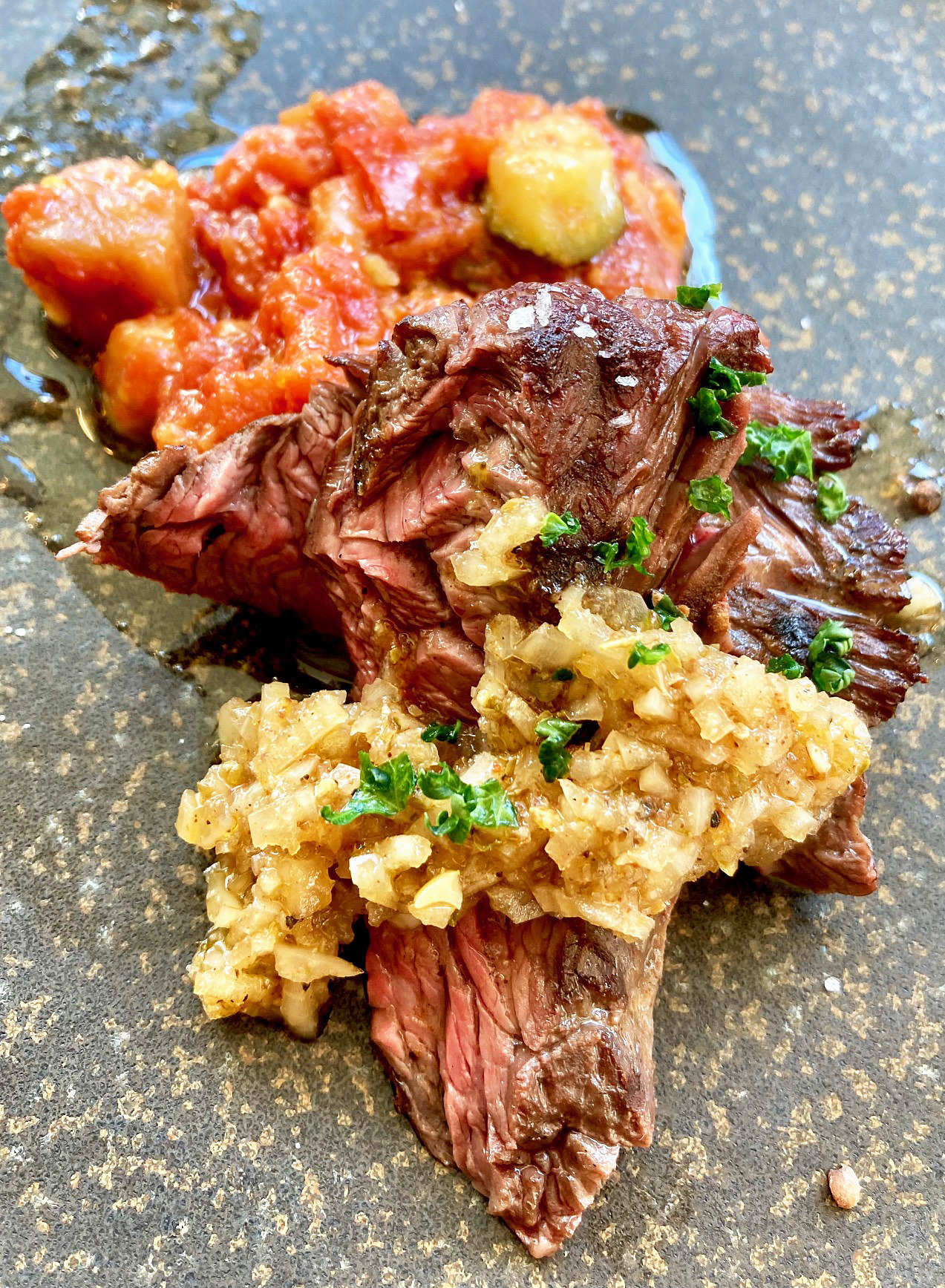 刻まれた黄色い玉ねぎも風味豊か!。肉は固めだけど美味しいでふ。