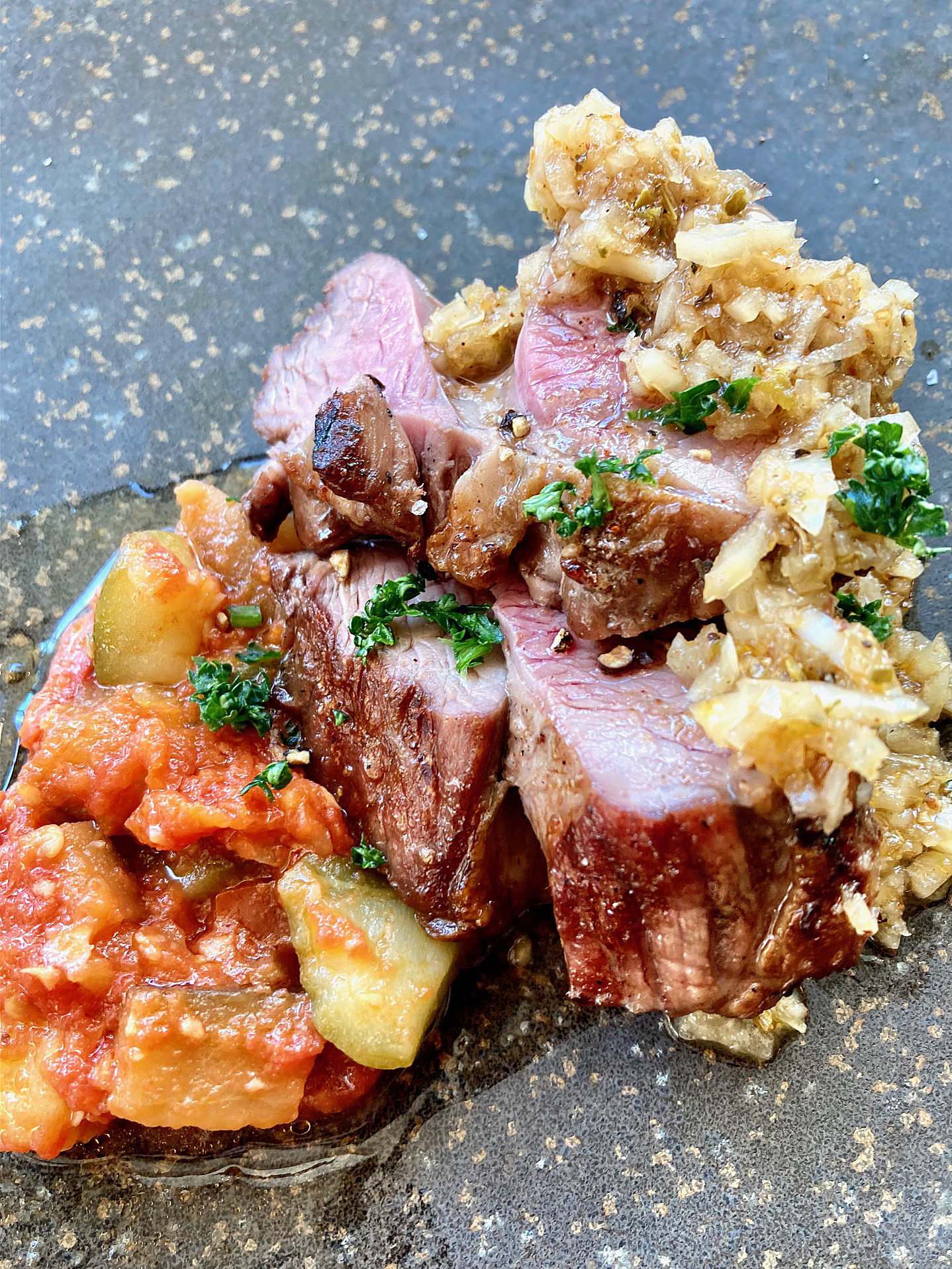 ナスとトマトのミートソースっぽい味が肉にバッチリ!。