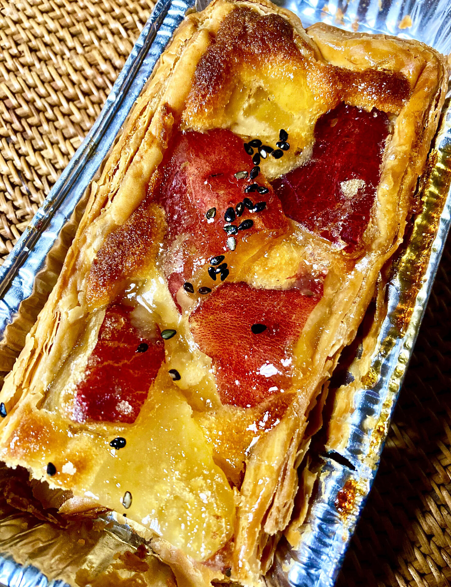 宝石のごとくキラキラ、キラリンチョな鳴門金時さつまいもパイ!、648円(税込)。