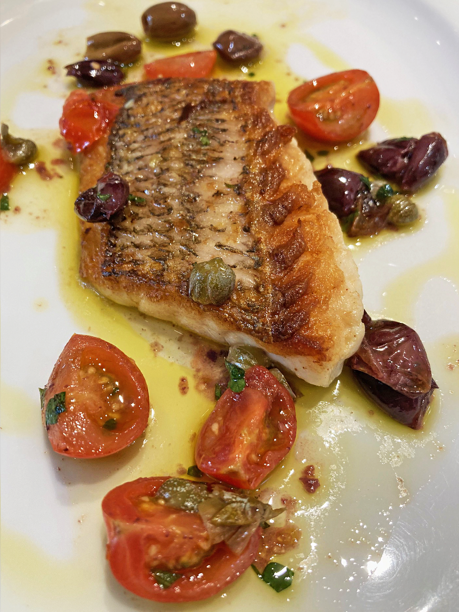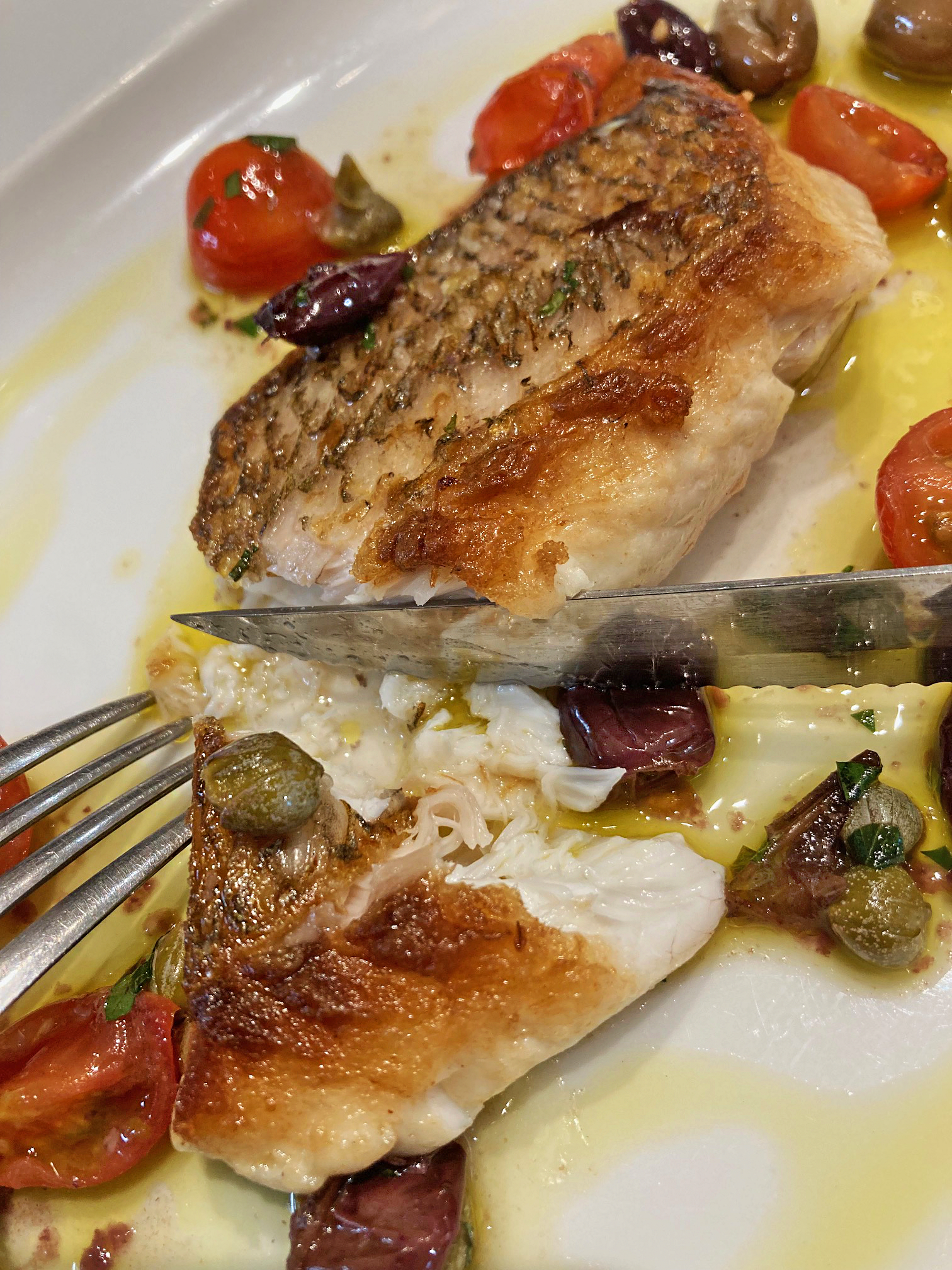 ほろ苦いオリーブのクタクタ煮も初めての遭遇。白身に的確適合ッ💛。